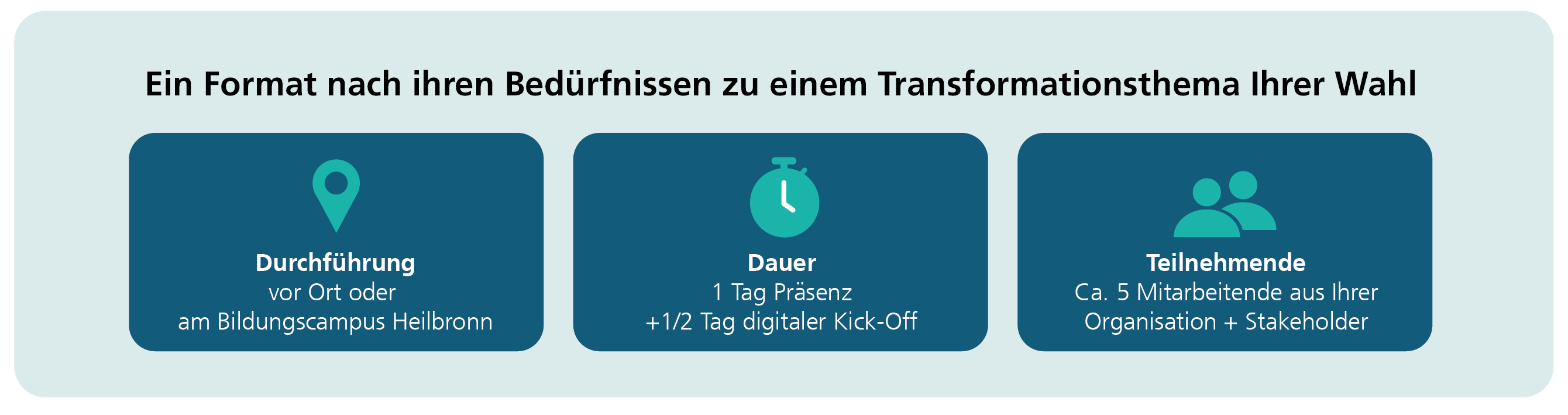 - Flexibel & an Sie angepasst: Durchführung bei Ihnen vor Ort oder im inspirierenden Umfeld des Bildungscampus Heilbronn.